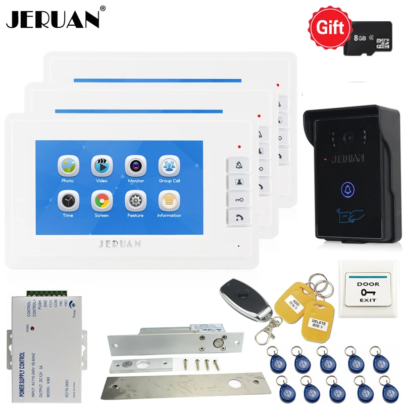 Thanks for reading Beste aanbiedingen JERUAN 7`` TFT Video door phone Video/voice Recording Intercom System kit 3 white Monitors + Waterproof RFID Access Camera 1V3 Met korting